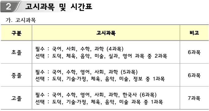 초/중/고 - 시험과목