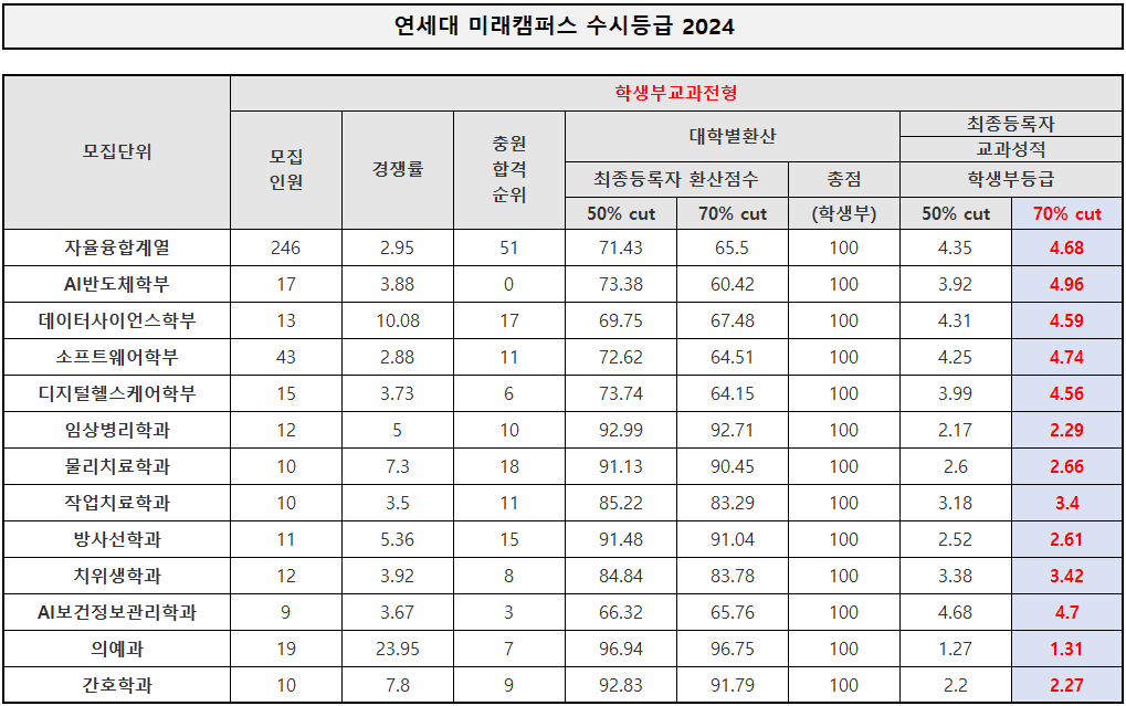 ✅ 연세대 미래캠퍼스 수시등급 2024 입결 ✅