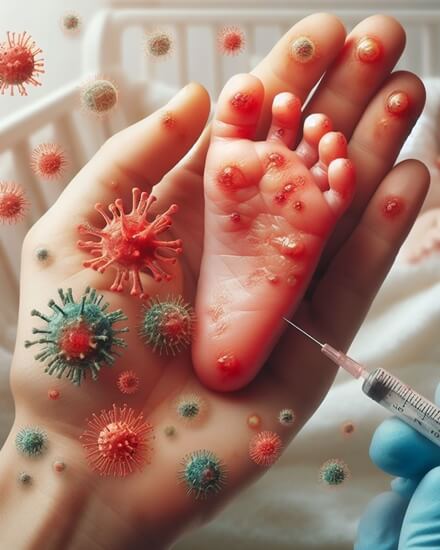 피부 관리 : 손, 발, 기저귀 지역에 나타난 발진이나 물집에는 특별한 치료가 필요하지 않으며, 대부분 자연스럽게 치유됩니다. 하지만 감염을 방지하기 위해 깨끗하고 건조하게 유지하는 것이 중요합니다.