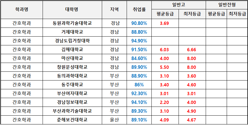 ● 부산·울산·경남 전문대 간호학과 수시등급