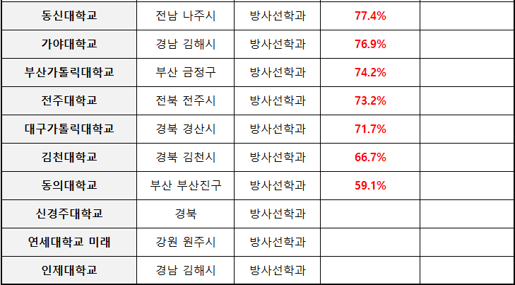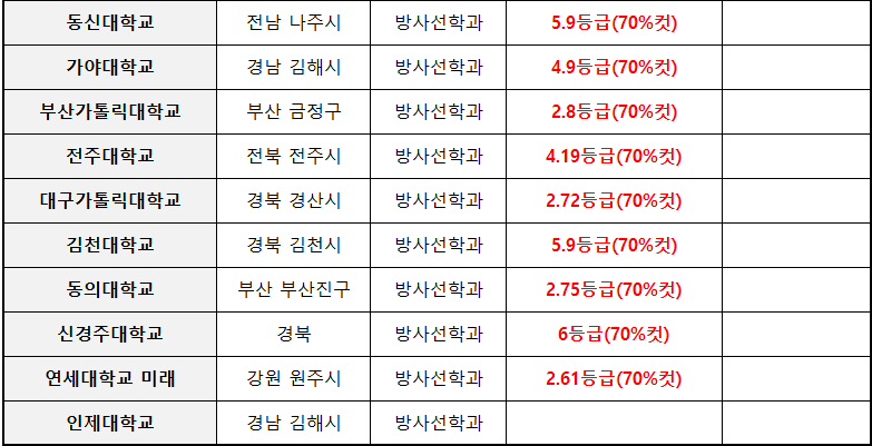 ▣ 4년제 방사선학과 대학 리스트 목록 ▣