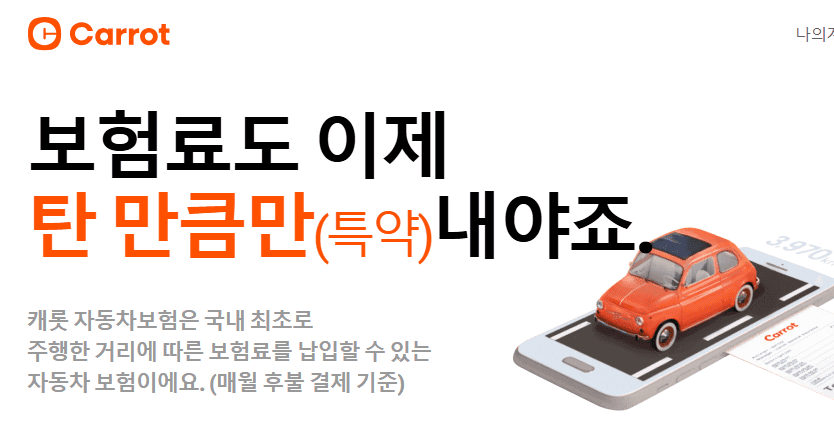 2019년 디지털 손해보험회사로 출발한 캐롯 퍼마일 자동차보험은 모바일과 온라인을 통한 간편한 가입 및 보험금 청구가 가능하며 캐롯의 탄생은 “왜 자동차 보험료는 1년치를 미리 내야 할까?” 라는 질문에서 비롯되었습니다.