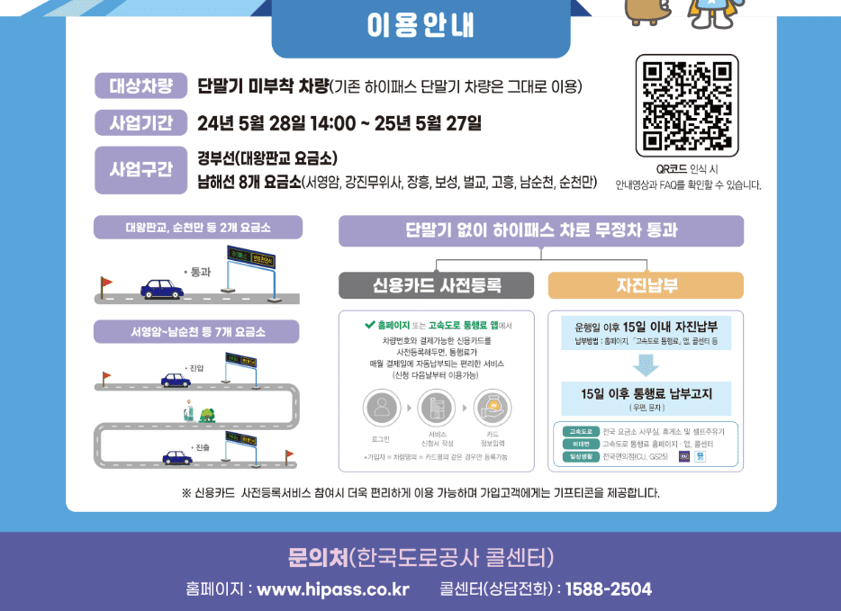 하이패스 단말기가 없는 운전자도 빠르게 통행료를 납부할 수 있어, 운전자의 편의가 증진됩니다.