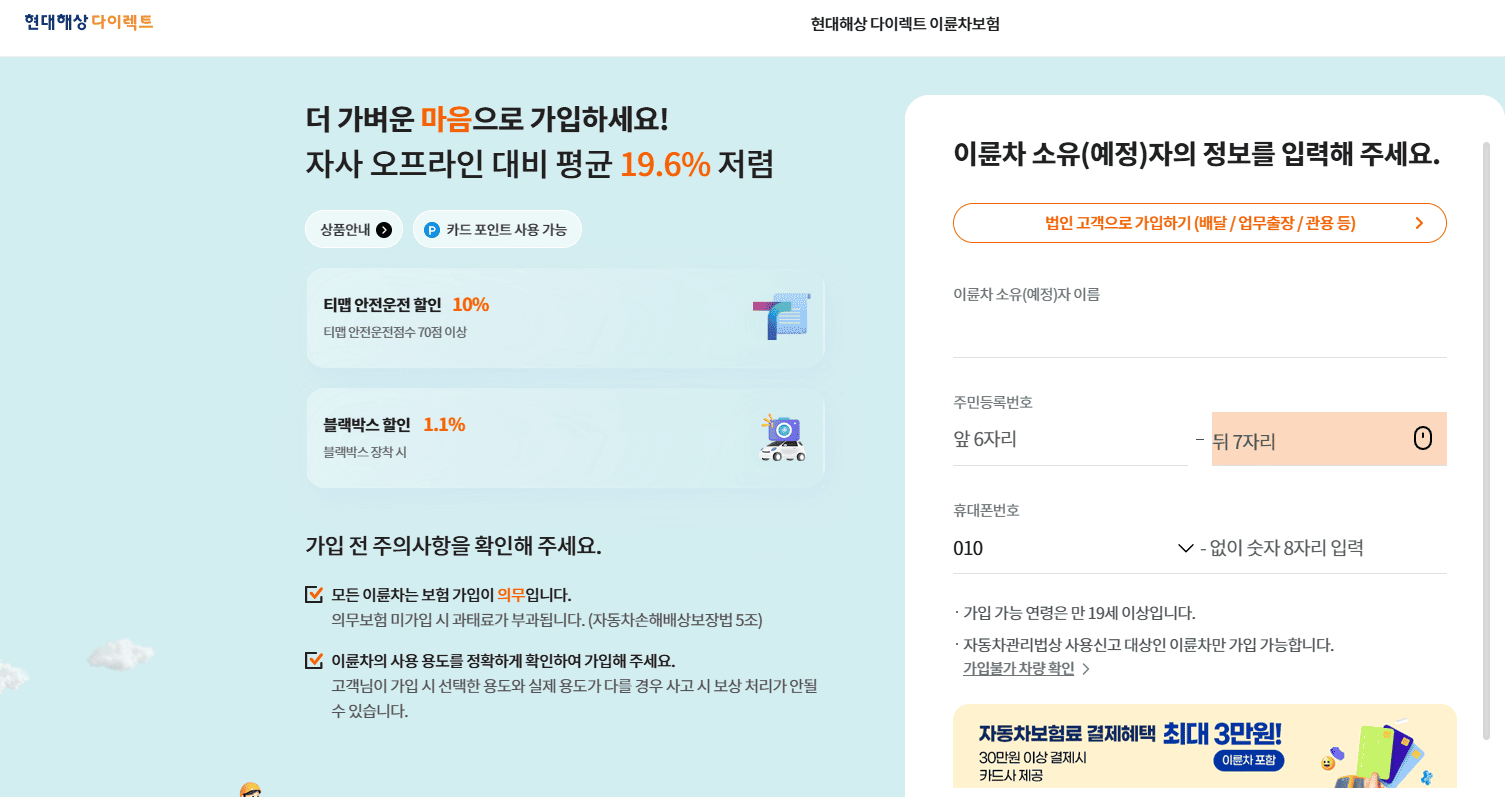 3단계: 현대해상 이륜차보험 다이렉트 가입