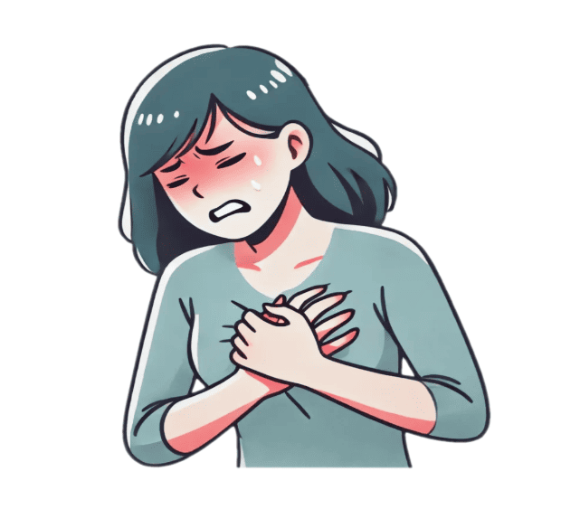 A: 여성은 전형적인 통증 대신 구역감, 피로감, 호흡곤란 등의 증상이 더 흔할 수 있습니다.