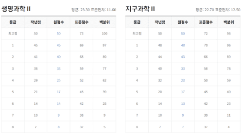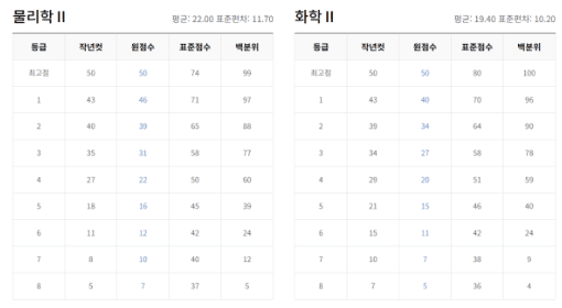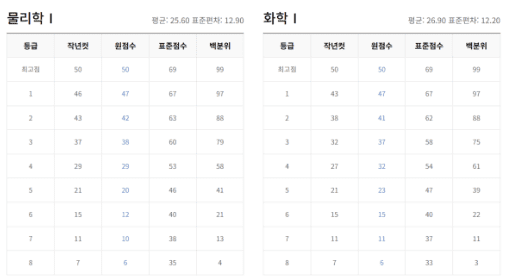 과탐 중에서 물리 등급컷도 포함이 되는데, 물리학Ⅰ, 화학Ⅰ, 생명과학Ⅰ, 지구과학Ⅰ, 물리학 Ⅱ, 화학 Ⅱ, 생명과학 Ⅱ, 지구과학 Ⅱ 가 포함이 됩니다.