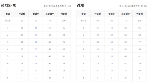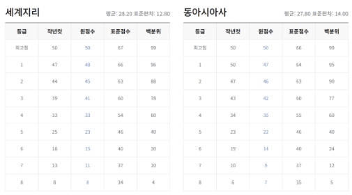 2024 수능 등급컷 원점수, 표준점수, 백분위에 물리, 한국사까지