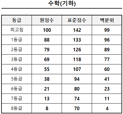 확률과 통계 2024 수능 등급컷 원점수 94, 표준점수 133, 백분위 96 이 1등급, 기하는 88, 133,, 96 이 1등급을 미적분은 84, 133, 96 이 1등급으로 확인 됩니다.
