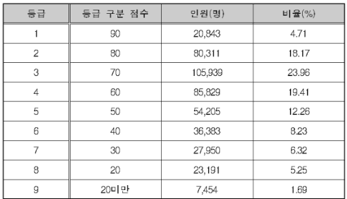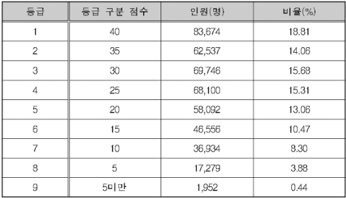 40점 이상이면 1등급, 35점 이상이면 2등급, 30점 이상이면 3등급이 됩니다.