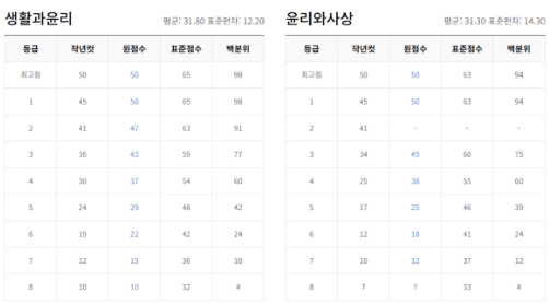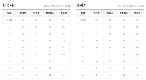 2024 수능 등급컷 원점수, 표준점수, 백분위에 물리,한국사까지
