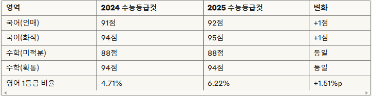 ▣ 2025 수능등급컷 VS 2024 주요 변화 한눈에 보기 ▣