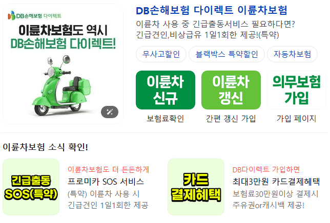 DB 이륜차보험 다이렉트 - 바로가기 예시